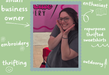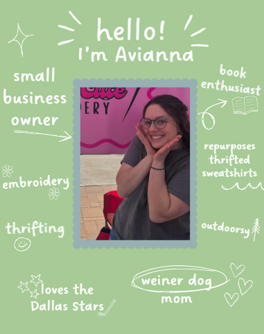 After moving to Texas from Minnesota, I took up embroidery as a hobby, making handmade sweatshirts for myself and friends. After falling more in love with embroidery, I decided to get a machine and took the risk of starting a small business.